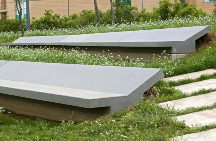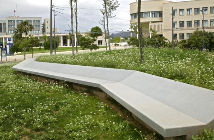 Ce banc en béton construit en une seule pièce est idéal pour vos trottoirs.