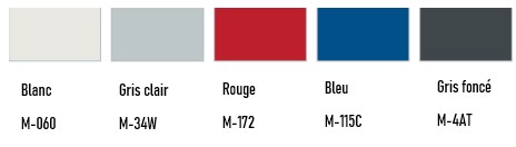 - Pieds fabriques en tube acier de 1,5 mm d’épaisseur peint avec peinture Époxy-Polyester en poudre, gris RAL 7035.