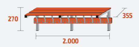 - Dimensions (L x P x H) : 2000 x 355 x 270 mm