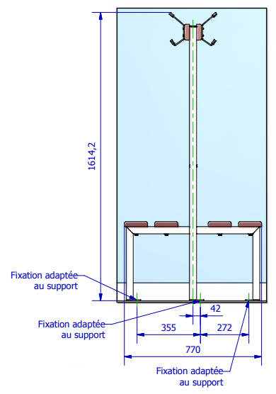 Fiche technique - Banquette centrale avec patères - assise Sapin
