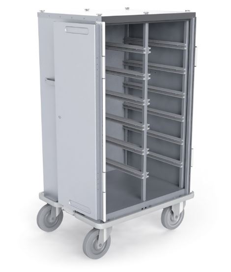 - Armoire en aluminium anodisé équipée de guides nylon pour le transport des bacs dimensions 600 x 400
