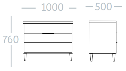 - Dimensions hors tout : H 760 x P 500 x L 1000 mm.
