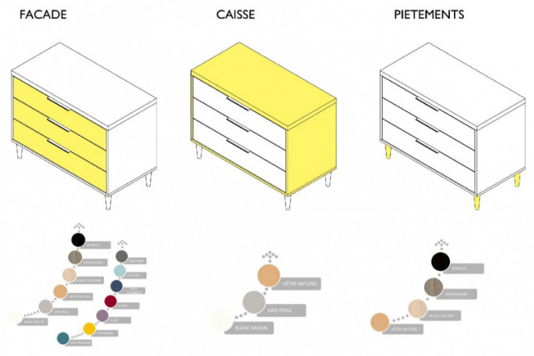 - 3 tiroirs réalisés en panneaux mélaminés d'épaisseur 19 mm.