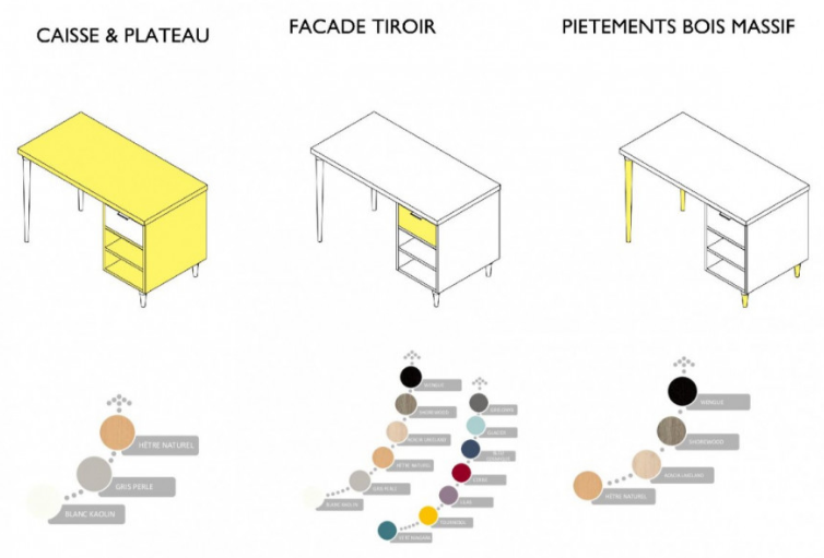 - Structure : panneau mélaminé d’épaisseur 19 mm et chants en polypropylène (PP) de 2 mm.