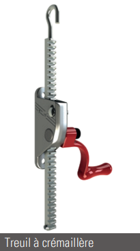 - Tension du filet par treuil à crémaillère