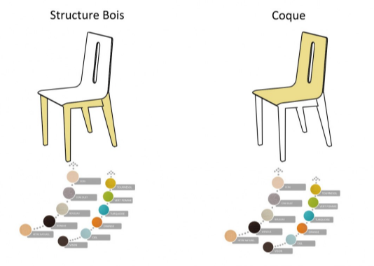 - L’assise et le dossier sont en contreplaqué moulé d'épaisseur 10 mm. Placet garni