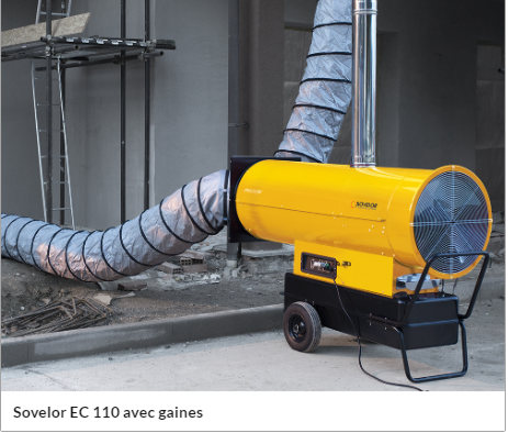 - Le EC 110 offre une puissance calorifique et un débit d’air très élevés autorisant des montées en température rapides dans les