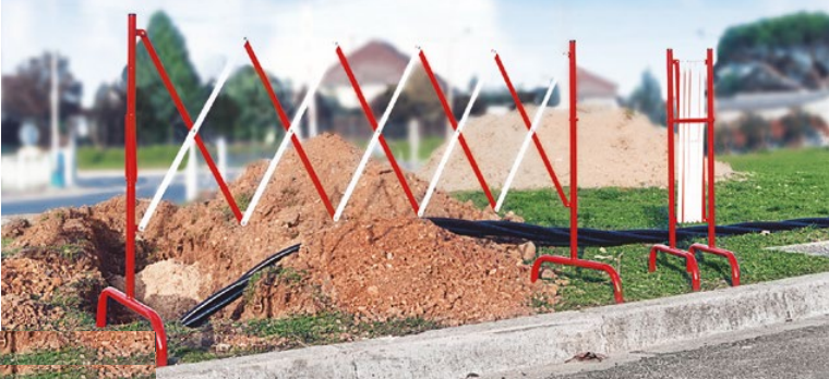 Cette barrière de chantier est utilisée lors de travaux ou chantier pour protéger un accès ou sécuriser une zone extérieure.