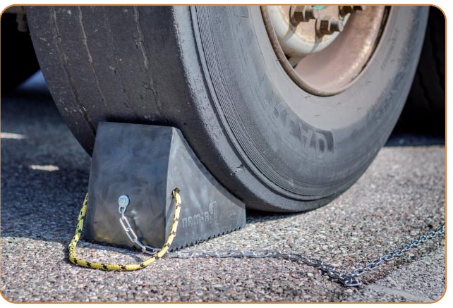 Cette cale de roue permet de sécuriser un camion à quai pendant le chargement.