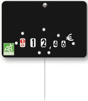Cette étiquette de prix est fabriquée en PVC noir, une matière résistante aux chocs.