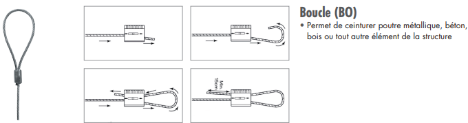 - 1 câble Ø 1,2 mm avec embout boucle (BO)