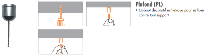 - 1 câble Ø 1,2 mm avec embout plafond (PL)