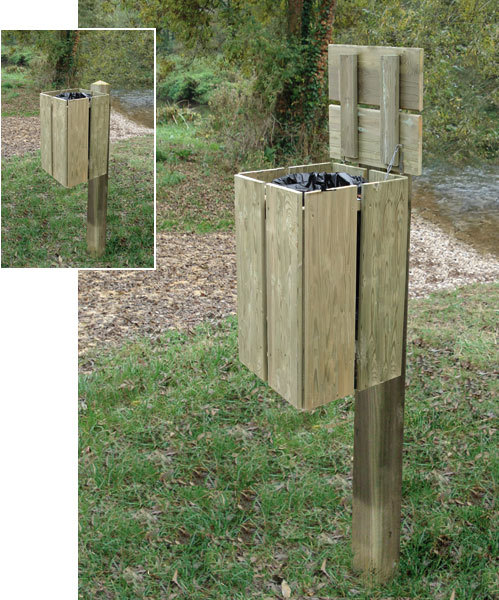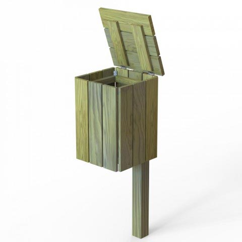 Cette poubelle est réalisée en pin traité autoclave classe 4 garantissant sa résistance aux différents agressions .