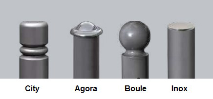 - Structure : corps maintenu en partie supérieure par 2 demi-arceaux horizontaux en acier plat dont l’un se lève pour permettre le basculement du corps de la poubelle à 45°.