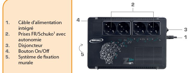 onduleur est conçue pour une protection des équipements informatiques et de loisirs numériques contre les perturbations de l’alimentation électrique.
