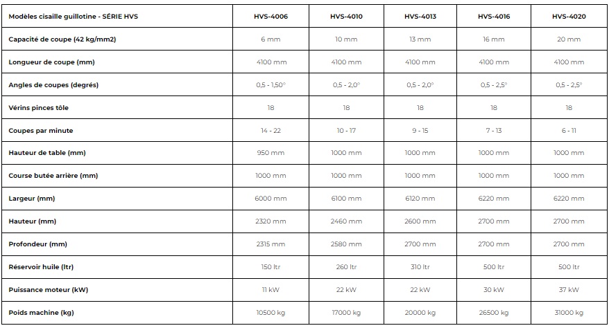 Ces cisailles guillotines hydrauliques à angle variable permettent de découper des tôles de 6 à 20 mm d'épaisseur.