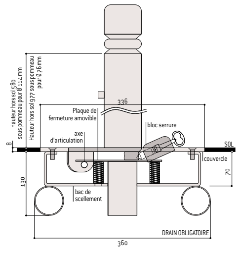 - Tube acier : ø 76 mm.