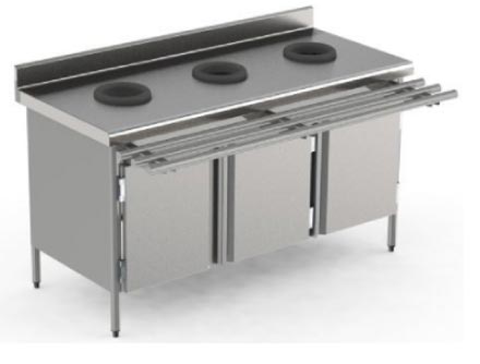 Ce meuble de pré tri est construit en acier inoxydable AISI 304L et est disponible en 3 modèles : 2, 3 ou 4 trous vide ordures.