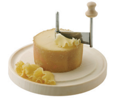 - Faire tourner le racloir sur un axe planté au centre du fromage.