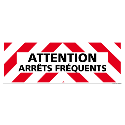 Vous recherchez une plaque adhésive pour ARRÊTS FREQUENTS munit d’un film rétro-réfléchissant, de manière à être visible à 500 mètres ?