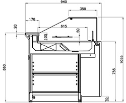 - Dimensions (L x P x H) : 1350 x 940 x 1055 mm / Poids : 180 kg / Puissance électrique : 748W