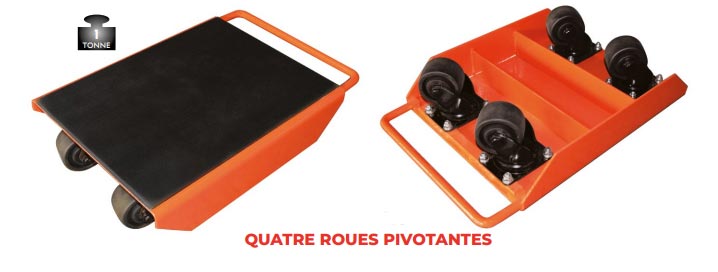 Le rouleur avec galets pivotants se place facilement au-dessous des charges et produits lourds.