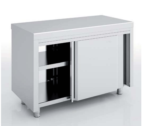 Notre meuble neutre traversant sans dessus, fabriqué en acier inoxydable AISI-304 18/8 finition satinée.