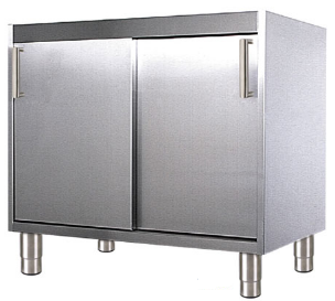 Deux portes coulissantes avec un piètement soit en inox ou roulettes à platine pour plaire à vos goûts.