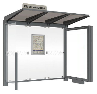 Cet abri bus est conçu pour protéger les voyageurs des intempéries aux arrêts des lignes d'autobus ou d'autocars.