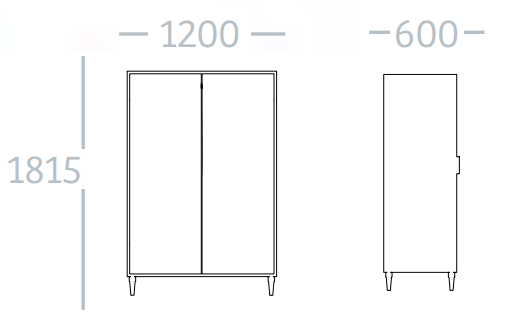 - Dimensions hors tout : H 1815 x P 600 x L 1200 mm.
