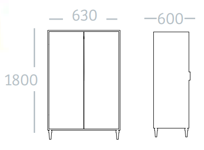 - Dimensions hors tout : H 1800 x P 600 x L 630 mm.
