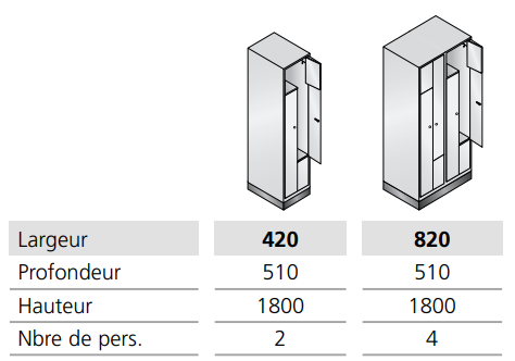 - Chaque porte est équipée d’une serrure à cylindre et de deux clés.