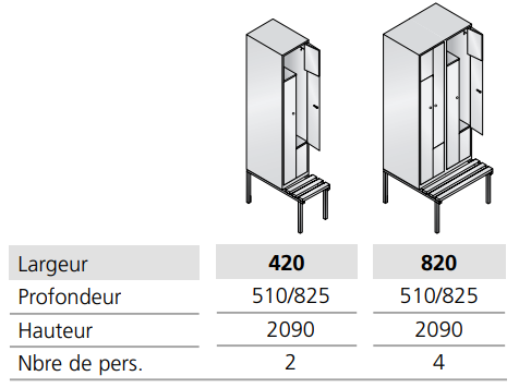 Cette armoire vestiaire avec mécanisme de porte pliante permet un gain de place pour les vêtements longs.