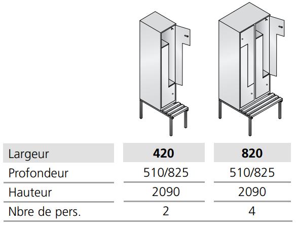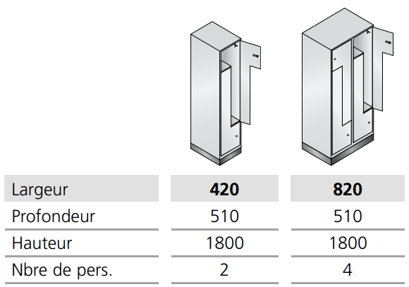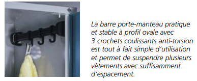 Cette armoire vestiaire avec portes fixes permet un gain de place pour les vêtements longs.