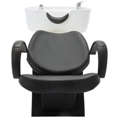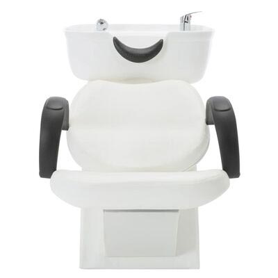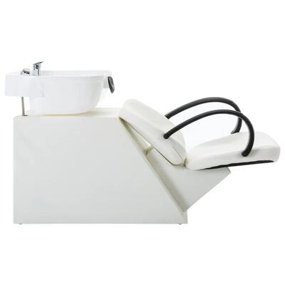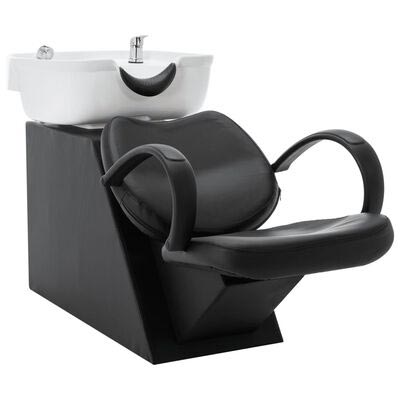 Cette chaise à shampoing est fabriquée en similicuir avec un cadre en bois de pin et contreplaqué.
