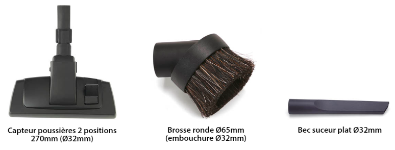 En effet, il est équipé d'un filtre primaire TriTex et d'un sac HepaFlo de série. Aspirateur livré avec un kit d'accessoires complet.