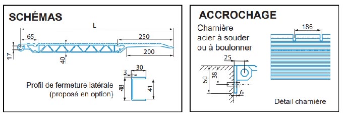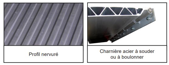 Dotée d’une surface antidérapante, il s’installe facilement grâce à sa charnière en acier, qui peut être soit soudée soit boulonnée.