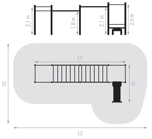 - Longueur de l’espace d’évolution (L2) : 9,5 m