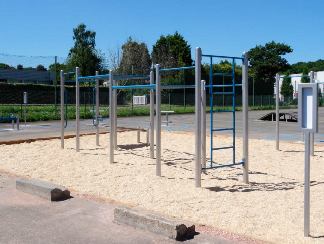 Cet équipement comprend 6 modules avec une échelle, des barres de tractions mais aussi un banc abdos incliné 300/500.