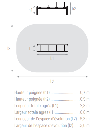 Les barres de préhension sont traitées anticorrosion, plastifiées et antidérapantes Ø 34 mm.