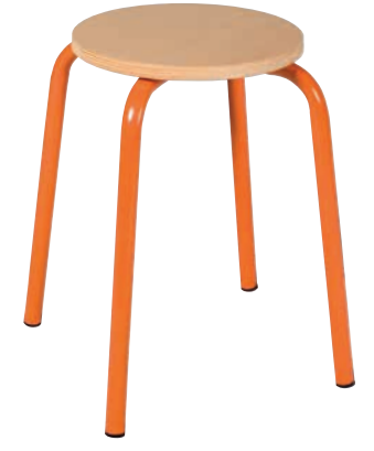 32 tabourets scolaires ronds avec pieds gris métallisé.