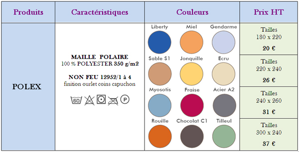 Bonjour Demande de tarif couverture polaire pour lit une place avec traitement anti-feu. Cordialement