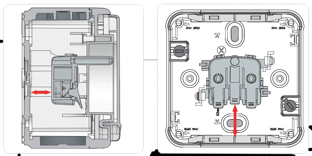 - Sur cette prise étanche extérieur, l'entrée de câble se fait par des tétines passe câble comme sur les boites de dérivations étanches