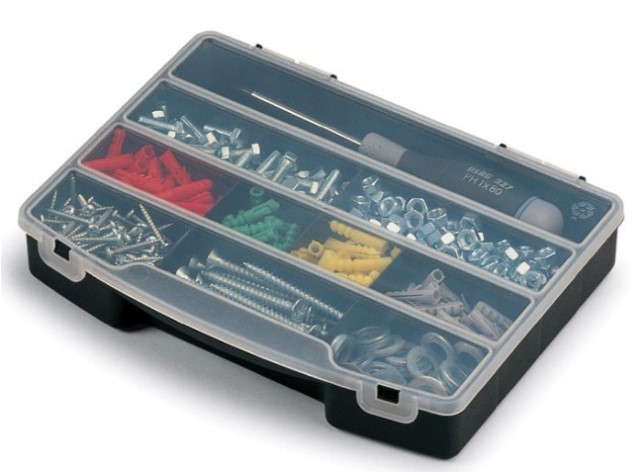 Cette mallette en plastique transparente est conçue pour le rangement de plusieurs outils .
