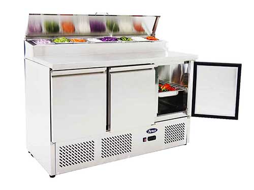 Cette saladette professionnelle permet aux restaurants ou aux snacks de rapidement préparer sandwiches ou salades.
