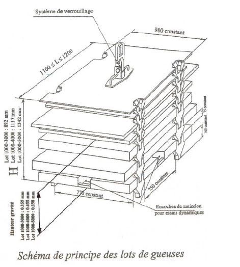 - L'opérateur sélectionne les gueuses dont il a besoin pour chaque lot d'essai.