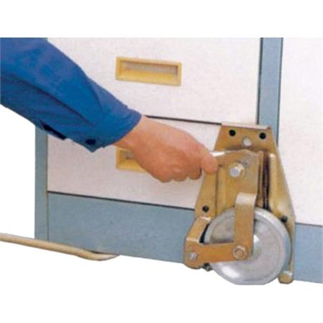 Conçu pour soulever la charge à l’aide de la partie plate de la barre, il faut ensuite introduire le talon de la roulette et soulever en actionnant la barre vers soi. Procéder de la même manière avec l’autre roulette. Ainsi, la charge est transportable.
