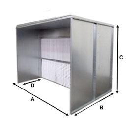 Le mur filtrant sec aspiration de particules est un matériel pour cabine de peinture qui se décline sous la forme d'un Kit d'assemblage mur, filtres et ventilateurs.