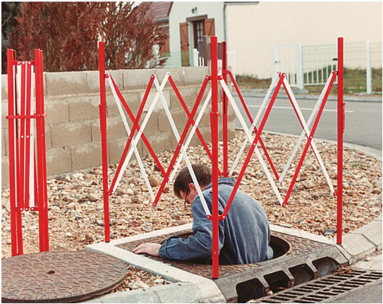 Bonjour, Utilisation d"une barrière extensible de regard afin de sécuriser une trémie servant à déposer au sous-sol les livraisons de nos denrées. Merci,