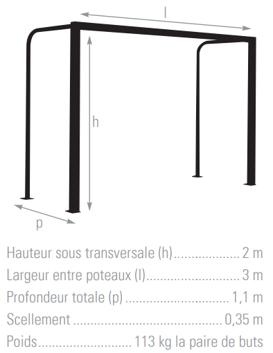 Ce but de handball de rue 3 x 2 m est idéal pour les installation extérieures et les centre scolaires.